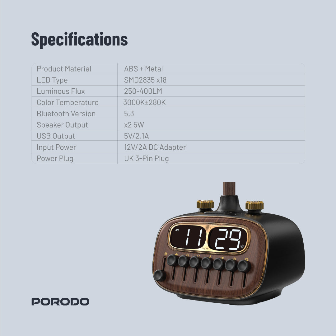 مصباح المكتب الرجعي من برودو لايف ستايل – إضاءة هادئة وصوت نقي لنوم مريح